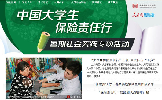 本次活動從全國27個省市100多所高校選拔出100支入圍團隊,在暑期分別以支教、環(huán)保、醫(yī)療、調(diào)研等形式服務(wù)鄉(xiāng)村,提高當?shù)鼐用癜踩庾R,提升社會對安全教育問題的關(guān)注,同時開展調(diào)研,了解基層保險保障相關(guān)情況。各團隊實踐期間在人民網(wǎng)強國社區(qū)活動專區(qū)實時播報實踐進程,發(fā)回稿件數(shù)千篇。大學生們積極走入社會、服務(wù)基層的實際行動贏得50萬網(wǎng)友為他們“點贊”。