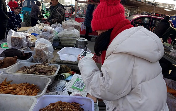“小伙子,手機帶了嗎?掃一掃,你就用微信付款吧!”這是攤販大爺的聲音。江蘇徐州市豐縣的“閆家小旭”對家鄉集市上菜攤前的二維碼,頗為吃驚,不敢相信。她說:“不到一年時間,發現家鄉變化真得好大。中國特色社會主義‘走進新時代’,農村里的樓房越蓋越高,院子也越來越寬敞。鄉間小道變成平整寬闊的水泥路,飛奔的火車也通往家鄉。手機支付走進鄉間集市攤販,西紅柿、茄子、黃瓜、豆角等反季節蔬菜也成為春節餐桌上的家常菜。”