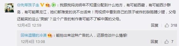 @囧叁叁叁叁叁:我爸就是我出生不久拆彈去世的,看到這個廣告,甚至有點想,哪怕真的只有只手陪我呢,可是拿這個來打廣告,良心真的安么?