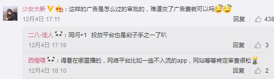 網友“@少女大新”:這樣的廣告是怎么過的審批的,難道交了廣告費就可以嗎?