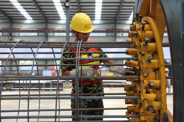 現(xiàn)在施工機(jī)械化程度非常高。圖為鋼筋籠機(jī)械加工設(shè)備,全自動焊接。 中鐵四局一公司提供