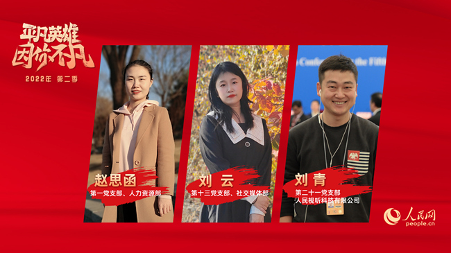 經(jīng)過入圍候選人在線上的精彩展示角逐,根據(jù)人民網(wǎng)黨委和管理層成員,黨支部書記、部門負(fù)責(zé)人代表,以及黨支部委員、黨員和群眾代表等30位評委現(xiàn)場打分,最終,來自第一黨支部、人力資源部的人事專員趙思函,第十三黨支部、社交媒體部短視頻組主編劉云,第二十一黨支部、人民視聽子公司視頻總監(jiān)劉青三位同志分別榮獲人民網(wǎng)2022年度第二季“平凡英雄”服務(wù)獎、創(chuàng)新獎和奮斗獎。同時,杜明明、燕帥、景玥、許維娜、楊伊、陳思、王亞微等七位同志獲得“平凡英雄”入圍獎。