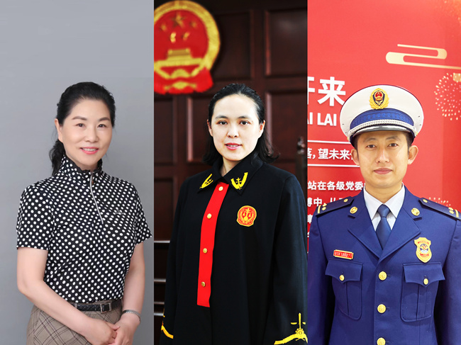 從左到右依次為全國最美信訪干部、北京市豐臺區(qū)信訪辦公室二級巡視員王凱,北京市朝陽區(qū)人民法院南磨房人民法庭副庭長、四級高級法官付艷,北京市朝陽區(qū)消防救援支隊(duì)奧林匹克公園特勤站副指導(dǎo)員、三級指揮員仇志宏