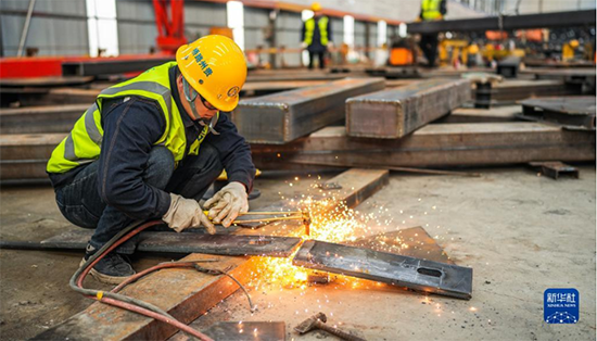 2月1日,工人在納晴高速六枝特大橋項目現場施工。新華社記者 陶亮 攝