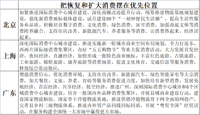 針對近期中央經濟工作會議提出的“要把恢復和擴大消費擺在優先位置”,地方政府將擴大內需尤其是促進消費恢復作為2023年政策的重點。